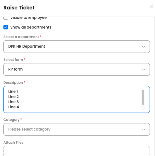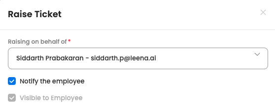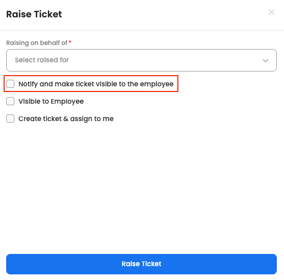 - After selecting the user, the first checkbox would now read "Notify and make ticket visible to the employee"