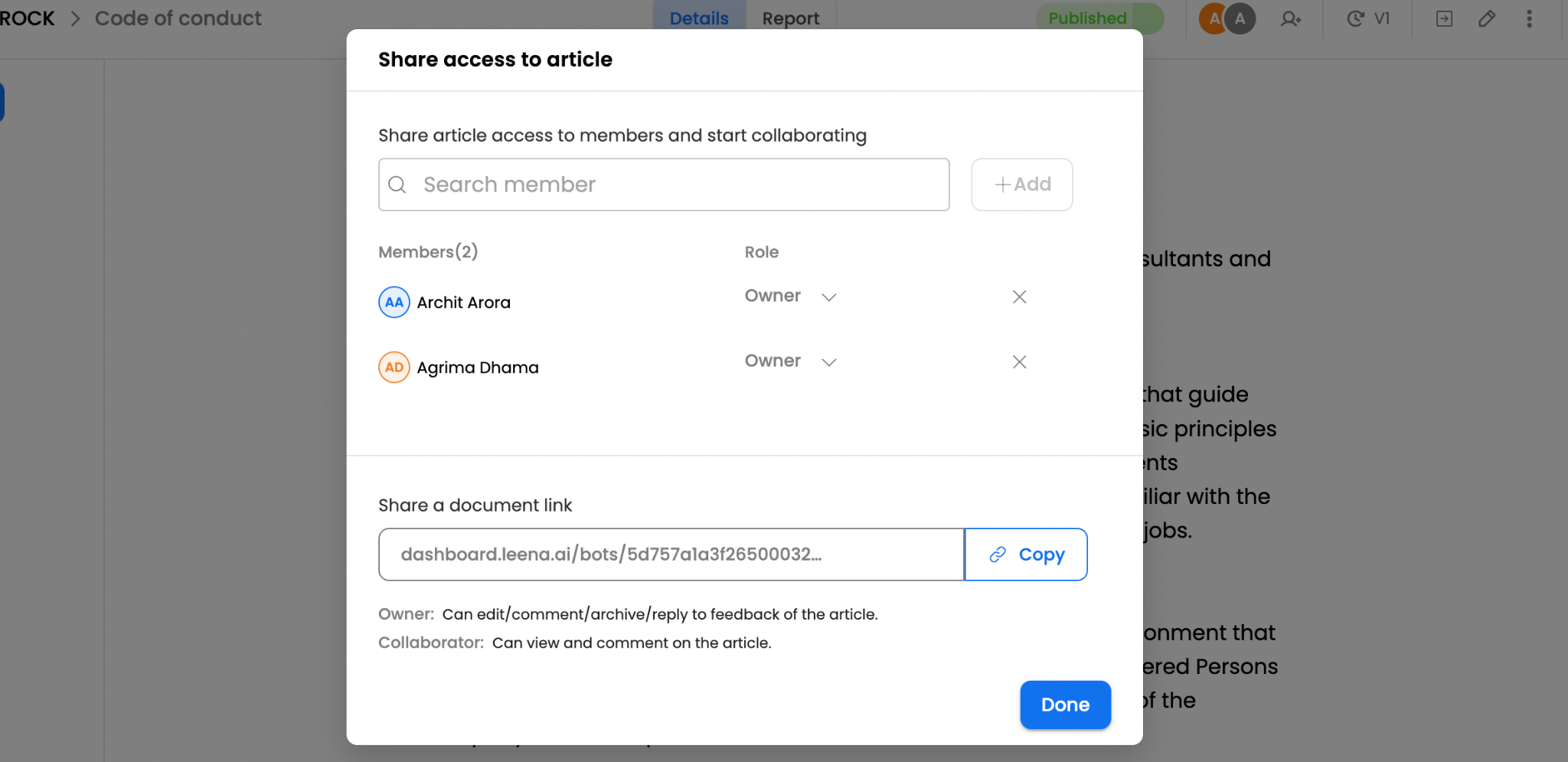 The admins/owners can also add multiple agents/admins as owners to the articles i.e KM articles can have multiple owners.
