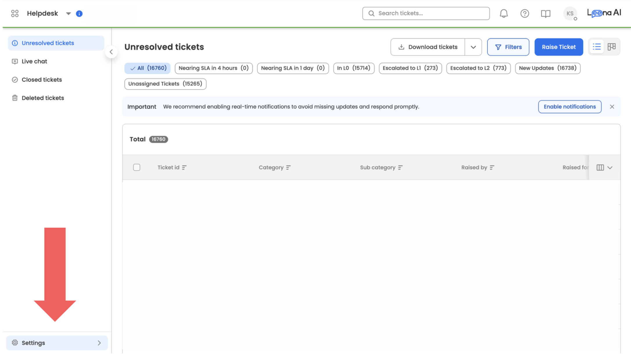 Help desk settings, which can only be accessed by Helpdesk admins (and not Helpdesk Agents), enables them to configure and customize help desk ticket behavior, automations and categorization according to their needs. The settings are classified into these groups: