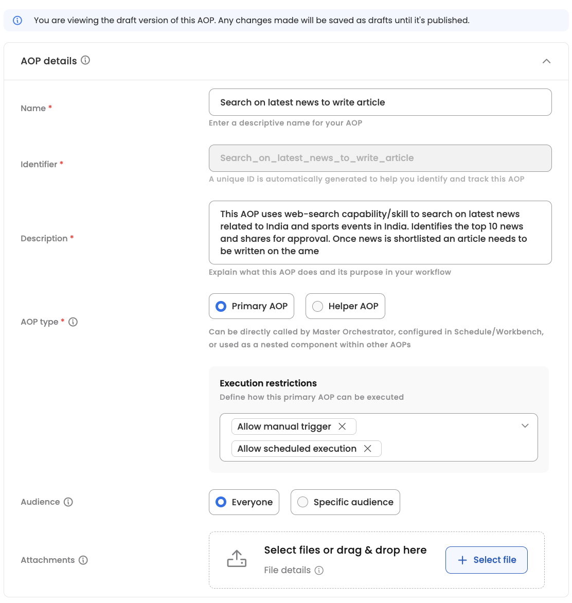 | Primary AOP | Standalone process that solves a complete business need | Directly triggered by users, Workbench (via schedules), or API |
