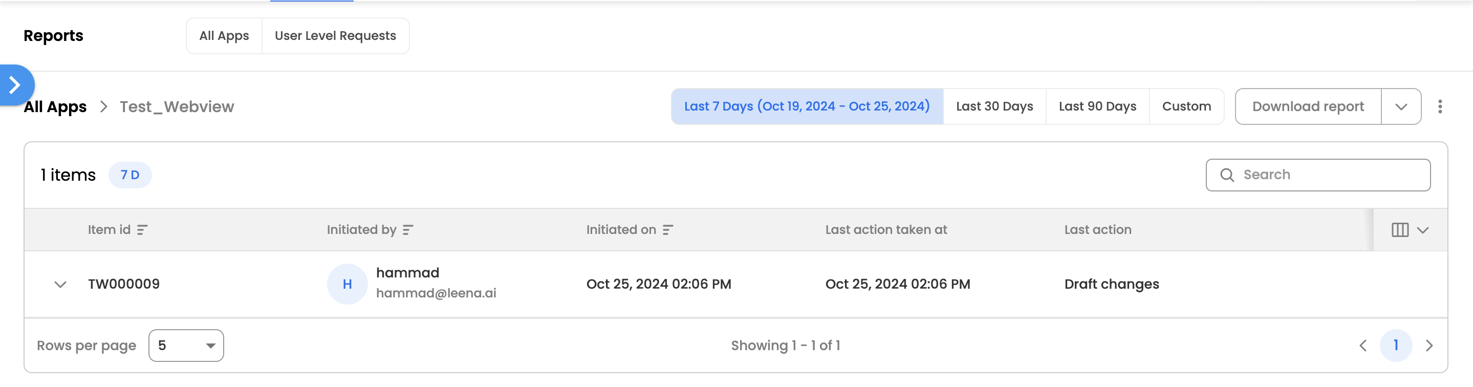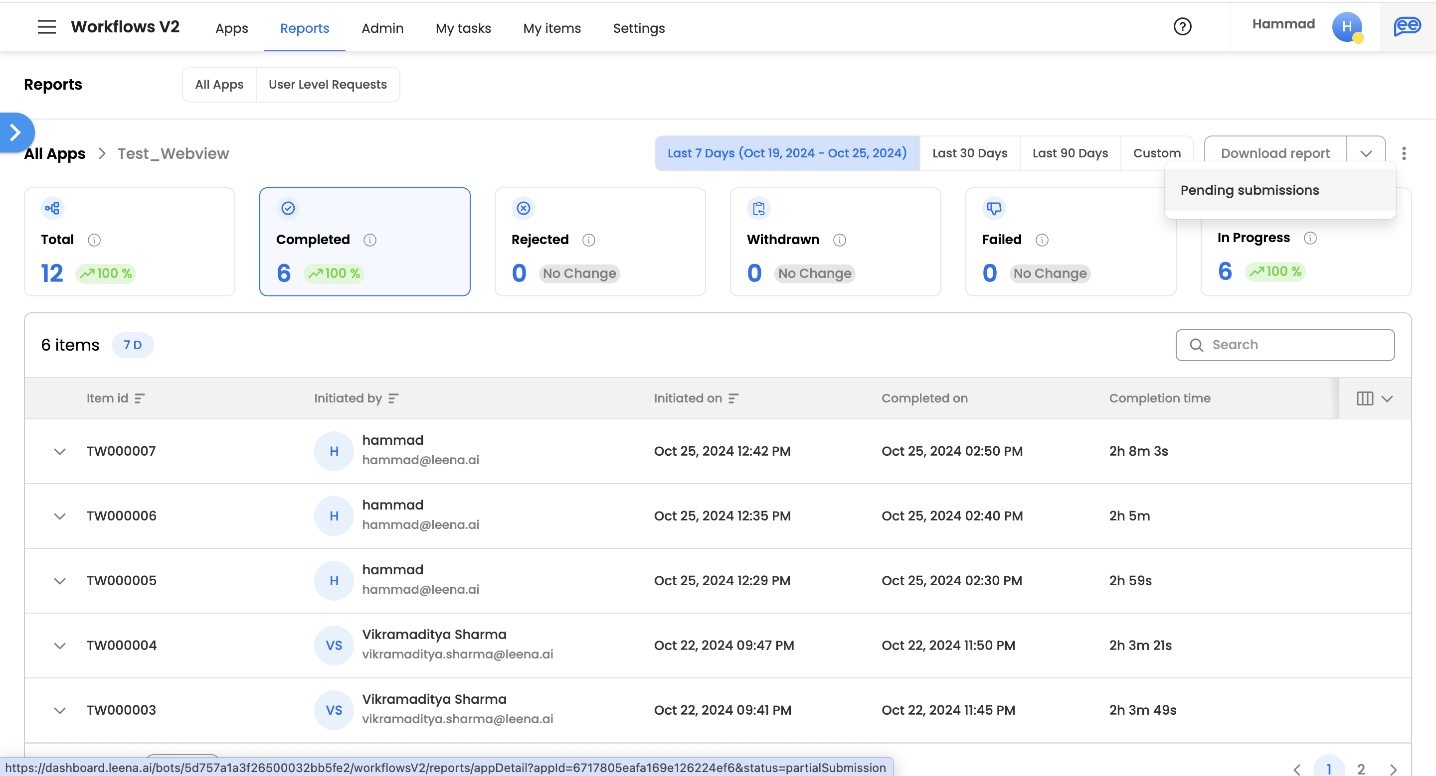 The user can view the pending submissions by clicking on 'Pending Submissions' CTA under three vertical dots next to download report option.