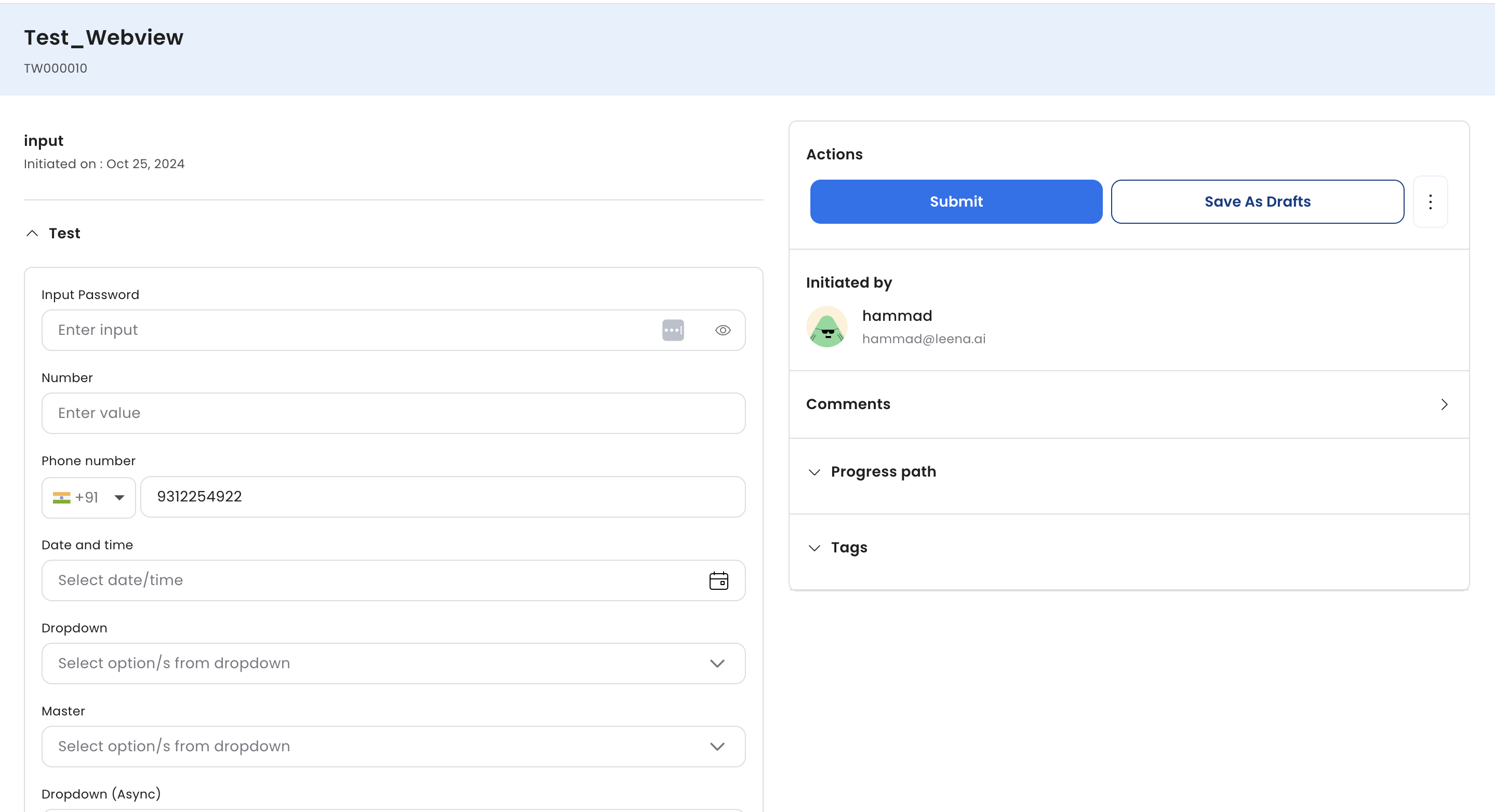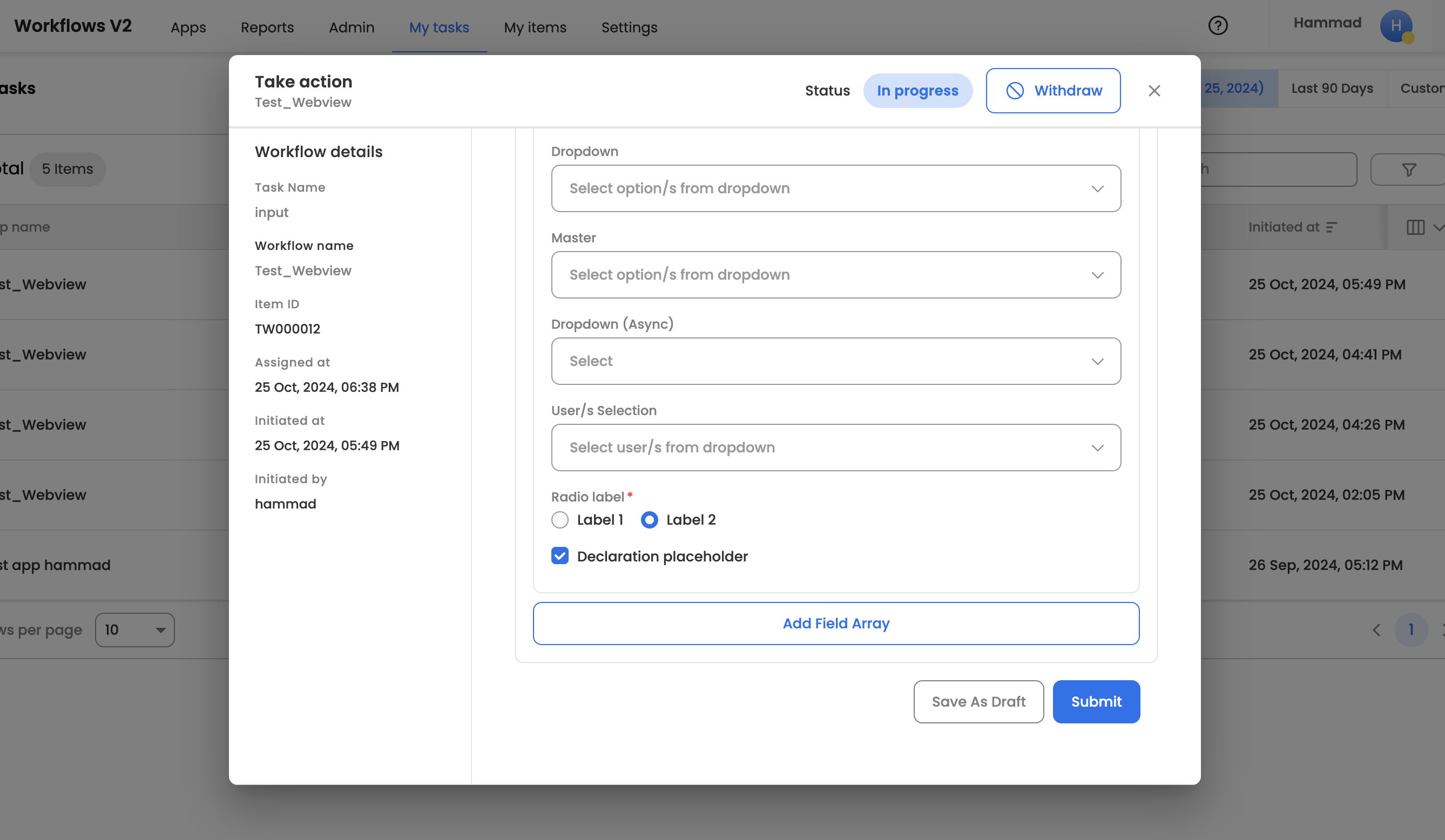 - Under a task view associated with an application, a requester or a task assignee can save its changes in draft before form submission.