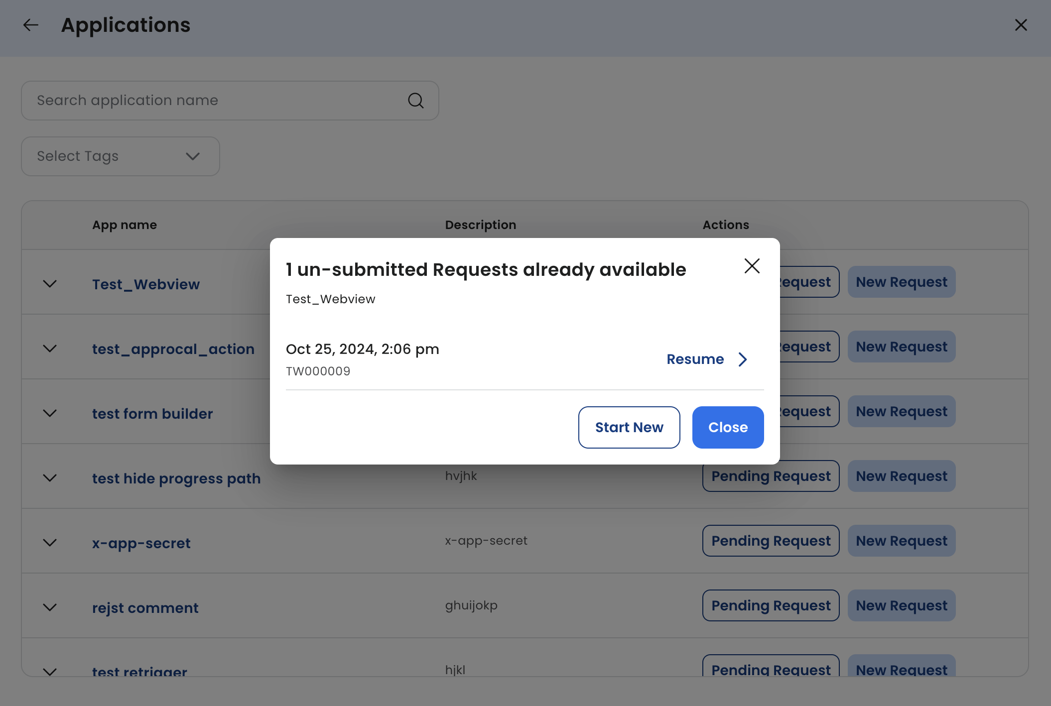End-user/Employee: View Pending Submission requests while initiating a new request