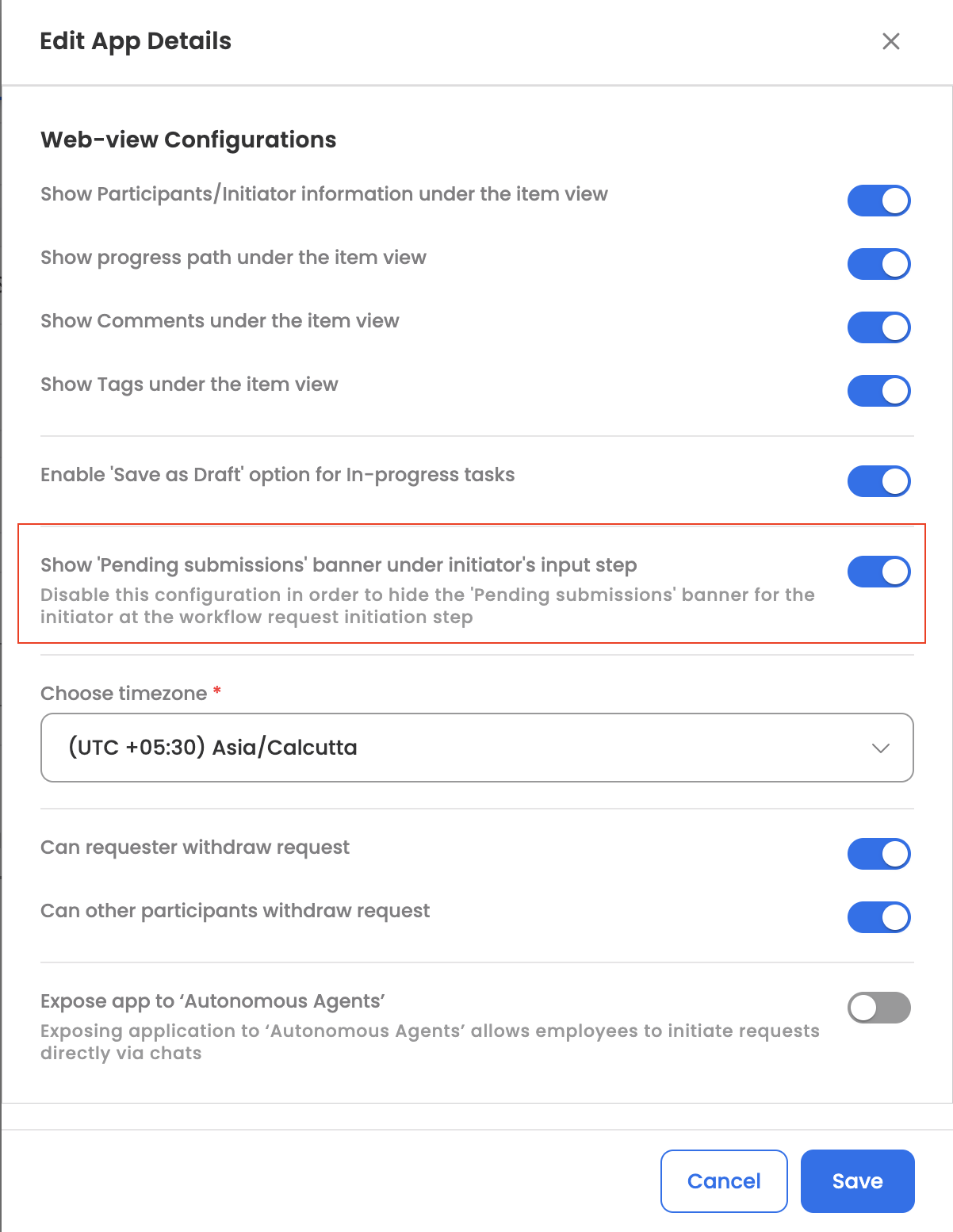 While creating/editing application details, an explicit configuration has been introduced to show/hide this banner for the requesters'.