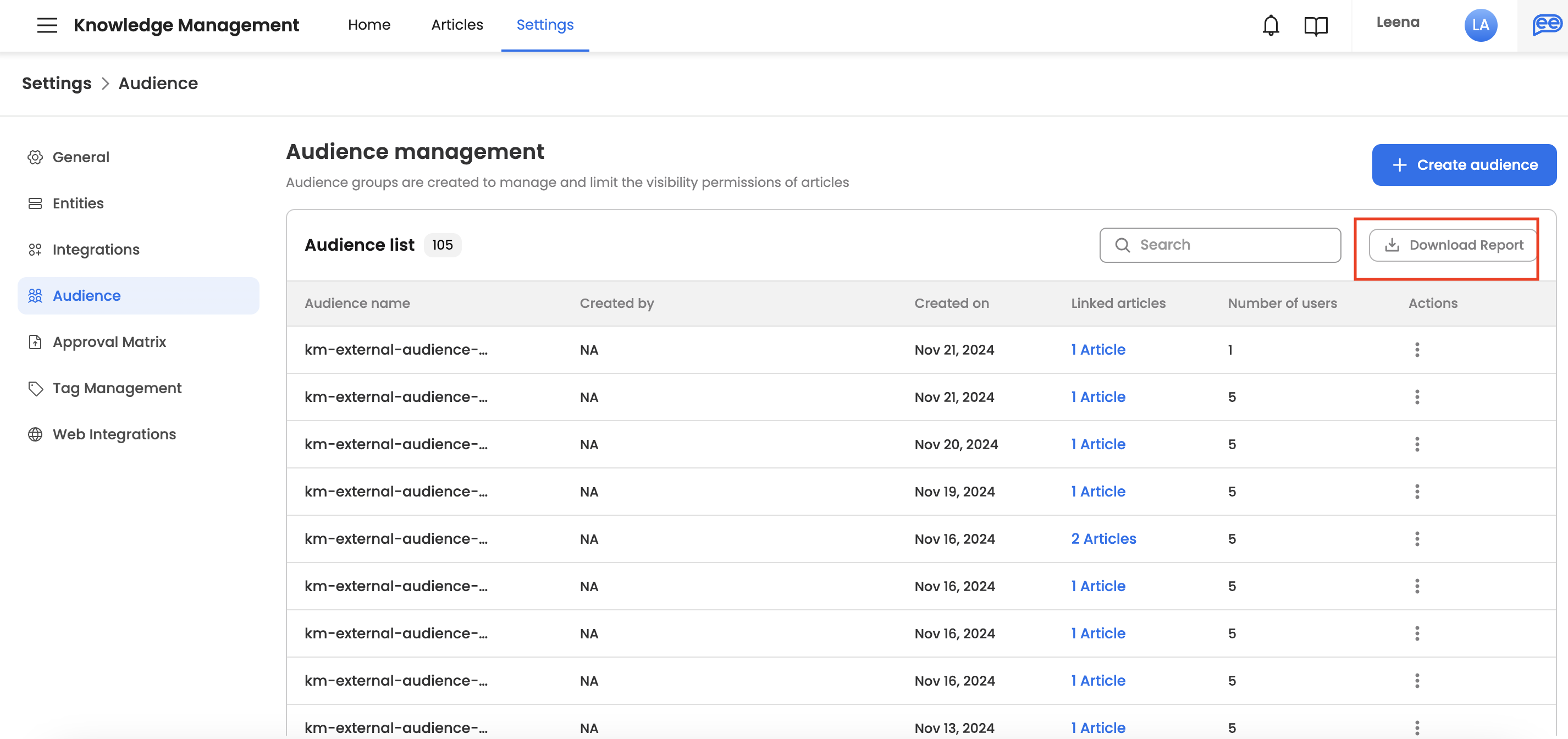 We can now download audience reports directly from the KM dashboard. These reports provide three types of data: