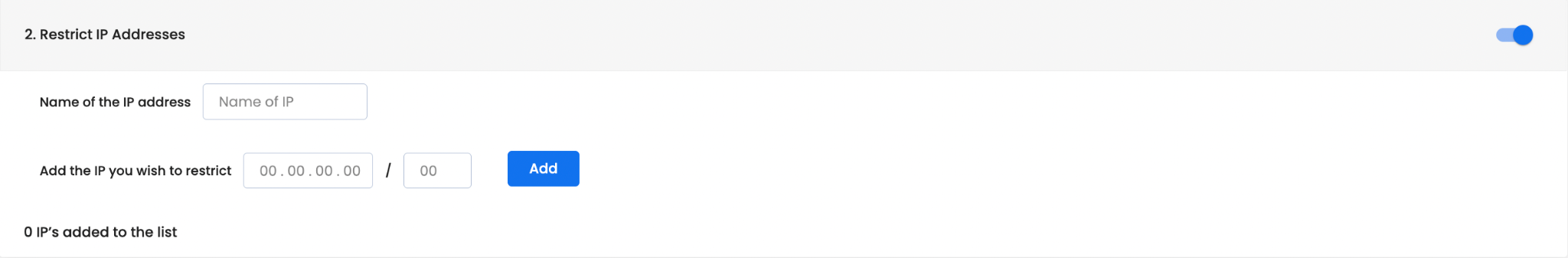 Navigate to the ‘Authentication’ tab under ‘Settings’ to configure processes to verify users logging into the application and prevent access from unwanted individuals.