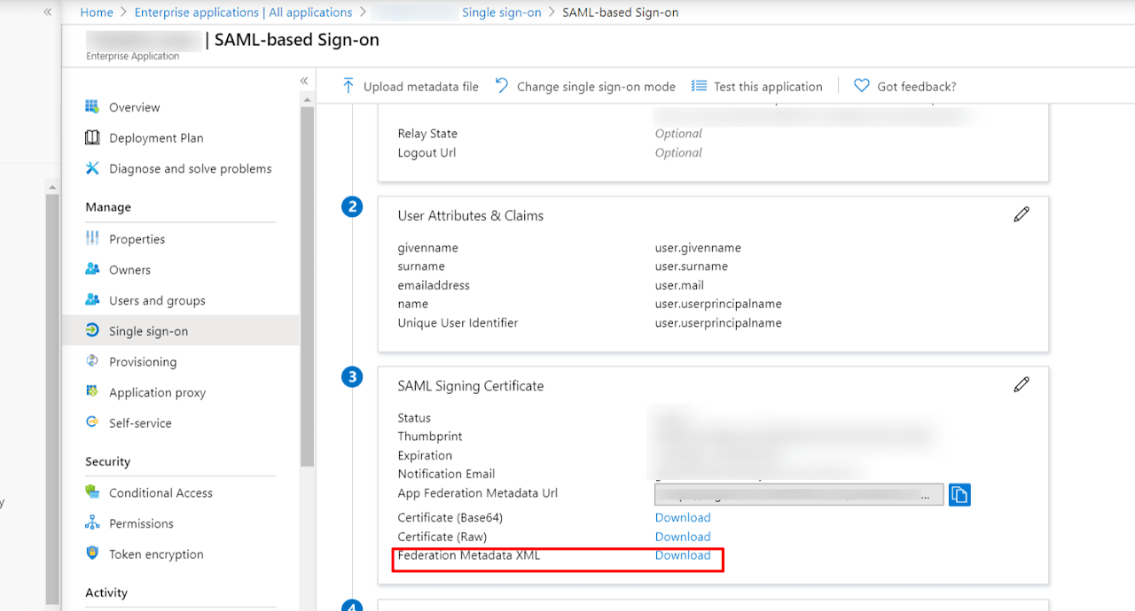 Download Federation Metadata xml and share it with Leena AI team. This would be used to configure SSO at Leena AI end.