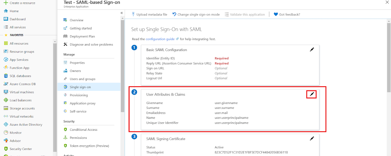 By default, the following Attributes will be sent in the SAML token. You can view or edit the claims sent in the SAML token to the application under the Attributes tab.