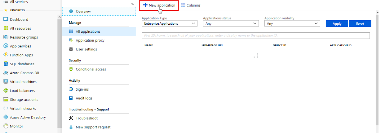 Select Azure Active Directory ⇒ Enterprise Applications.