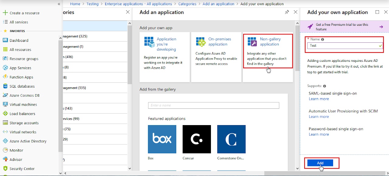 Click on Non-gallery application section and enter the name for your app and click on Add button.