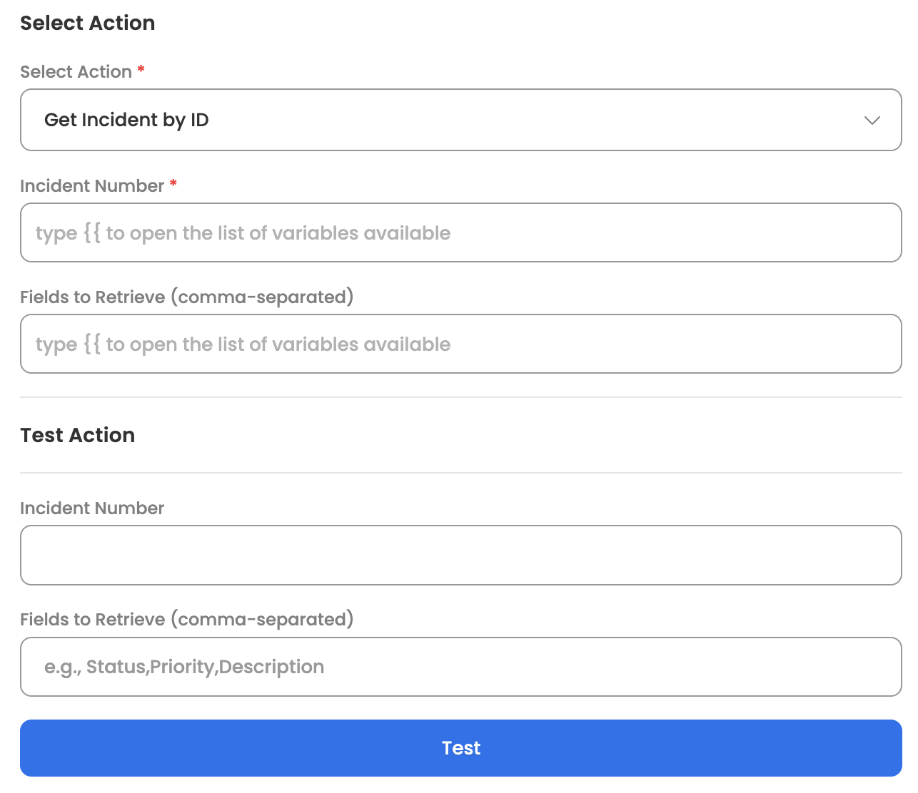 "fields": "Incident Number,Description,Status,Priority,Create Date",