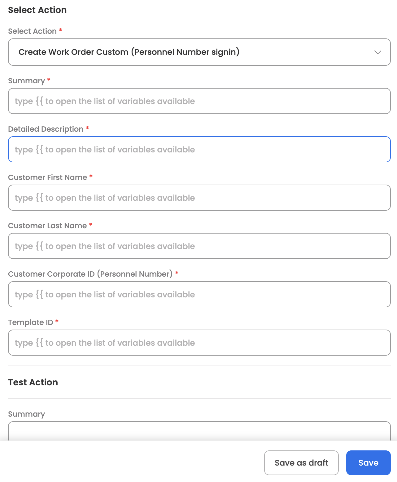 Creates a new work order in BMC Helix ITSM using the customer's Personnel Number (Corporate ID) for identification. The Agent can leverage the skill (workflow), which has been designed to create a new work order in BMC Helix, once the user raises a query to do so.