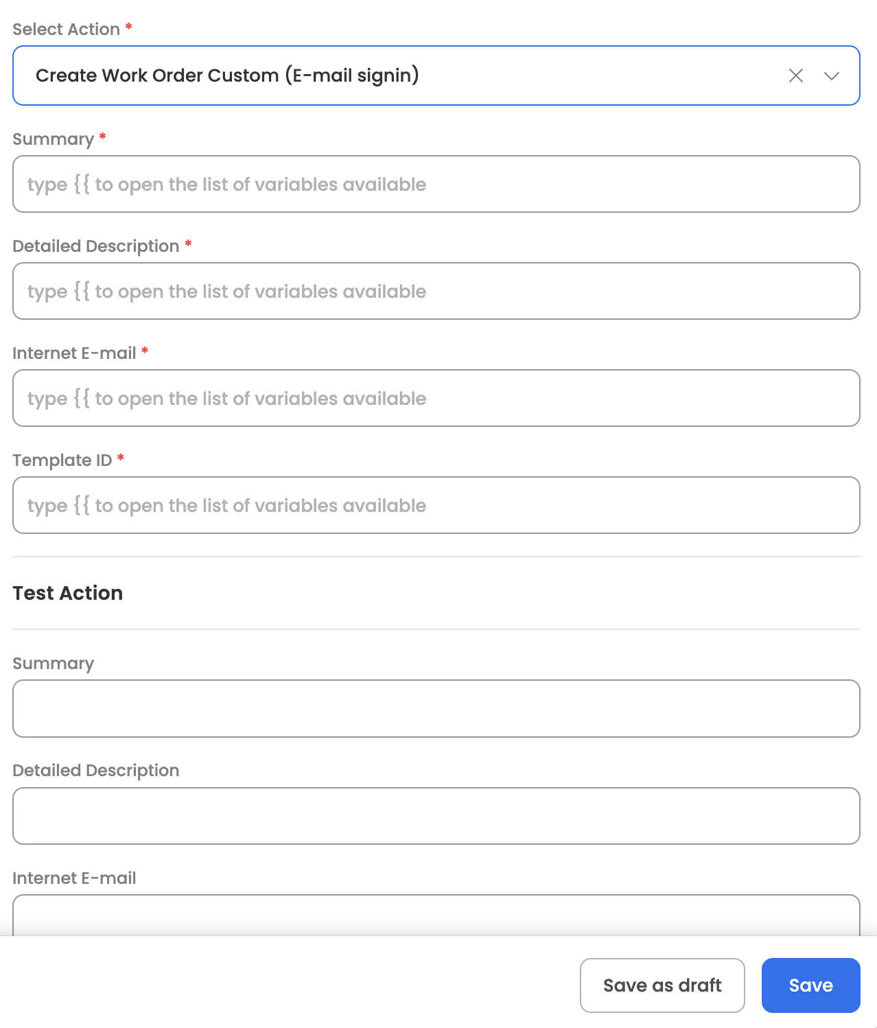 Creates a new work order in BMC Helix ITSM using the user's email address for identification. The Agent can leverage the skill (workflow), which has been designed to create a new work order in BMC Helix, once the user raises a query to do so. Here are some common use cases: