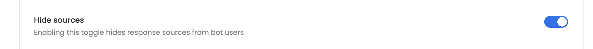 Hide sources: This option can be used to control the visibility of source articles in the bot responses.