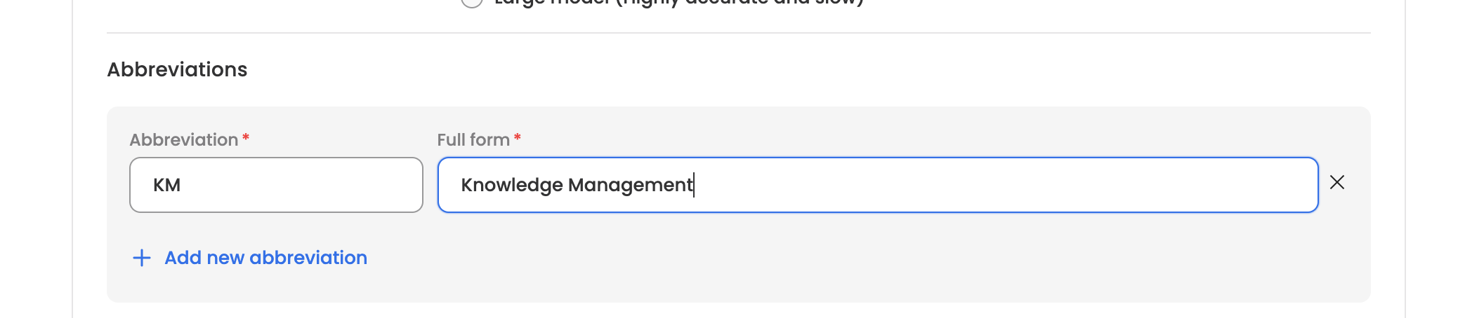 Abbreviations: Users can also define company-specific abbreviations which they would like our AI model to understand.