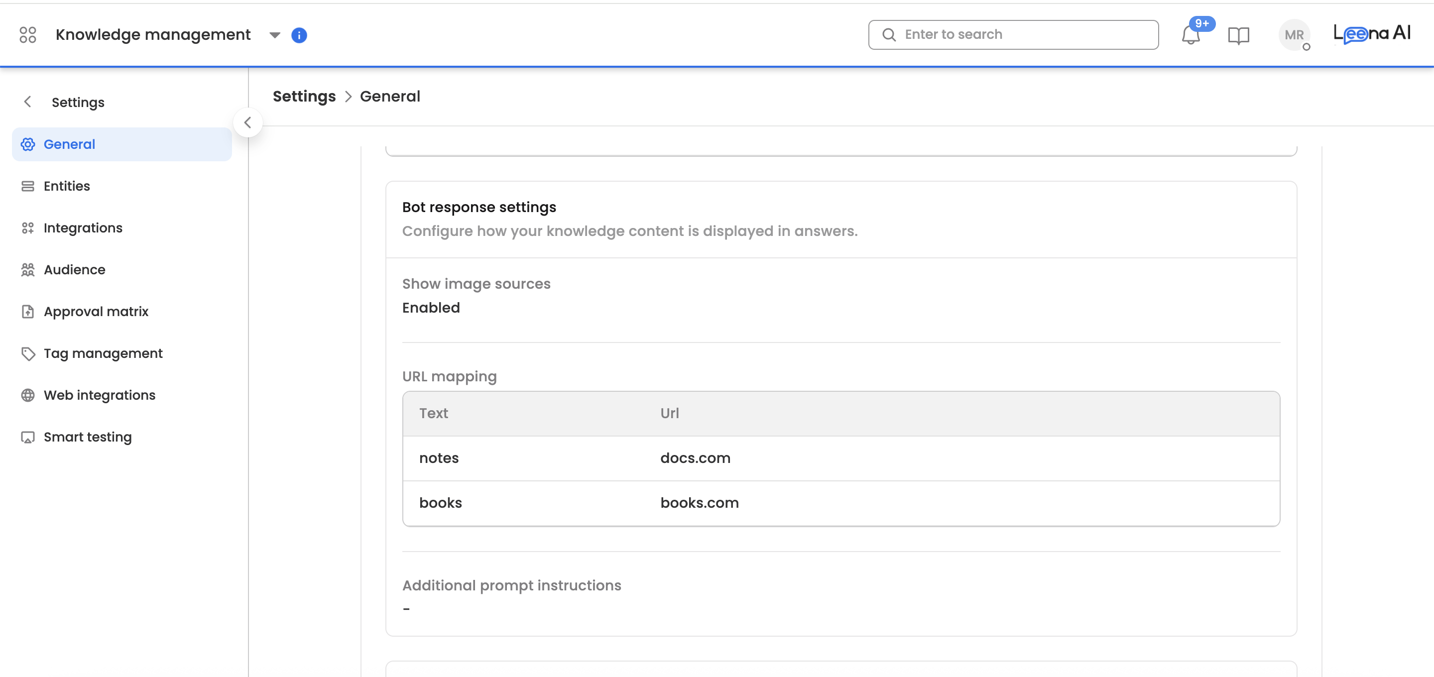 | URL Mapping | Key-Value | N/A | A dynamic list mapping specific text strings to URLs. The bot will automatically hyperlink these phrases in its responses. |