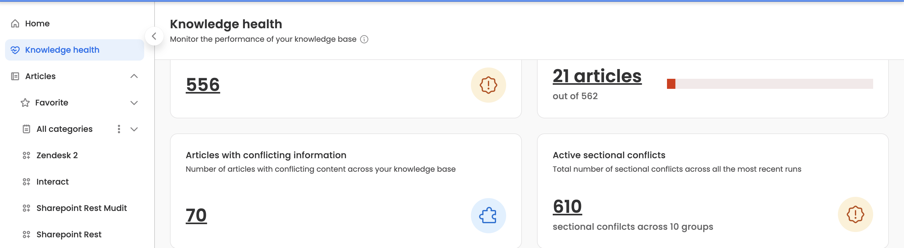 Articles with conflicting information: The number of articles containing one or more contradictions across your knowledge base.