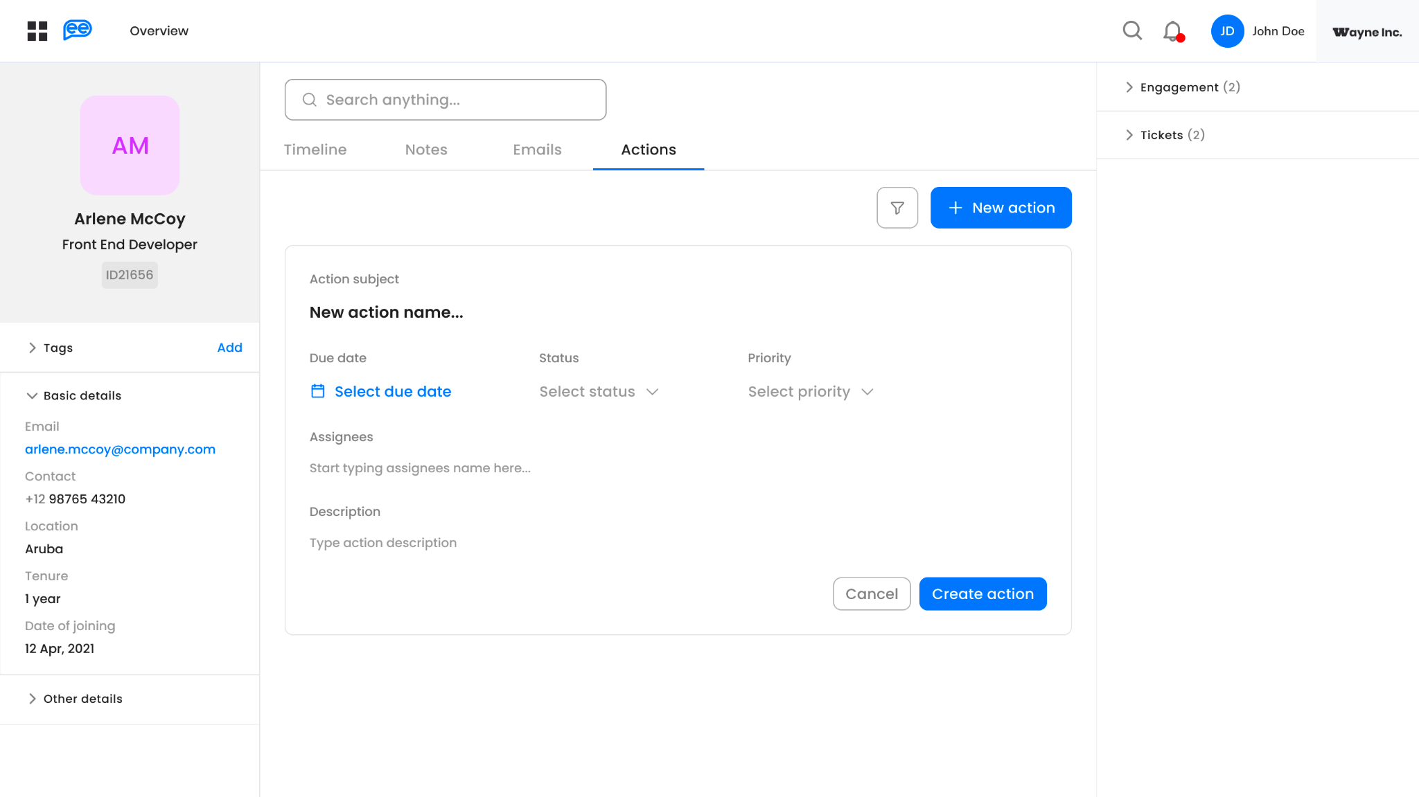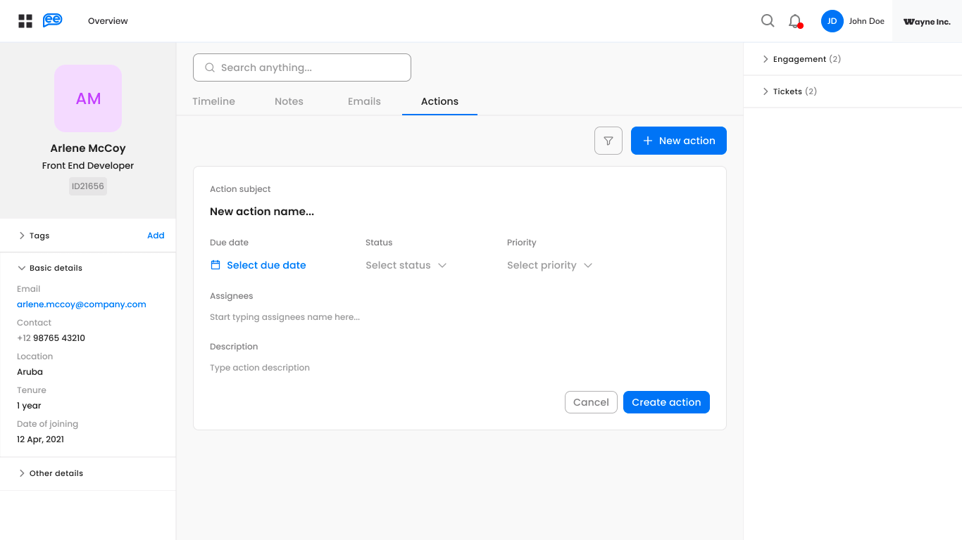 Actions allows teams to create, assign, and organize work visually. With this feature, companies can better facilitate teamwork, as well as track progress and coordination. Every action is created against an employee. HRs and managers can create an action, assign it to other stakeholders, and track the progress.