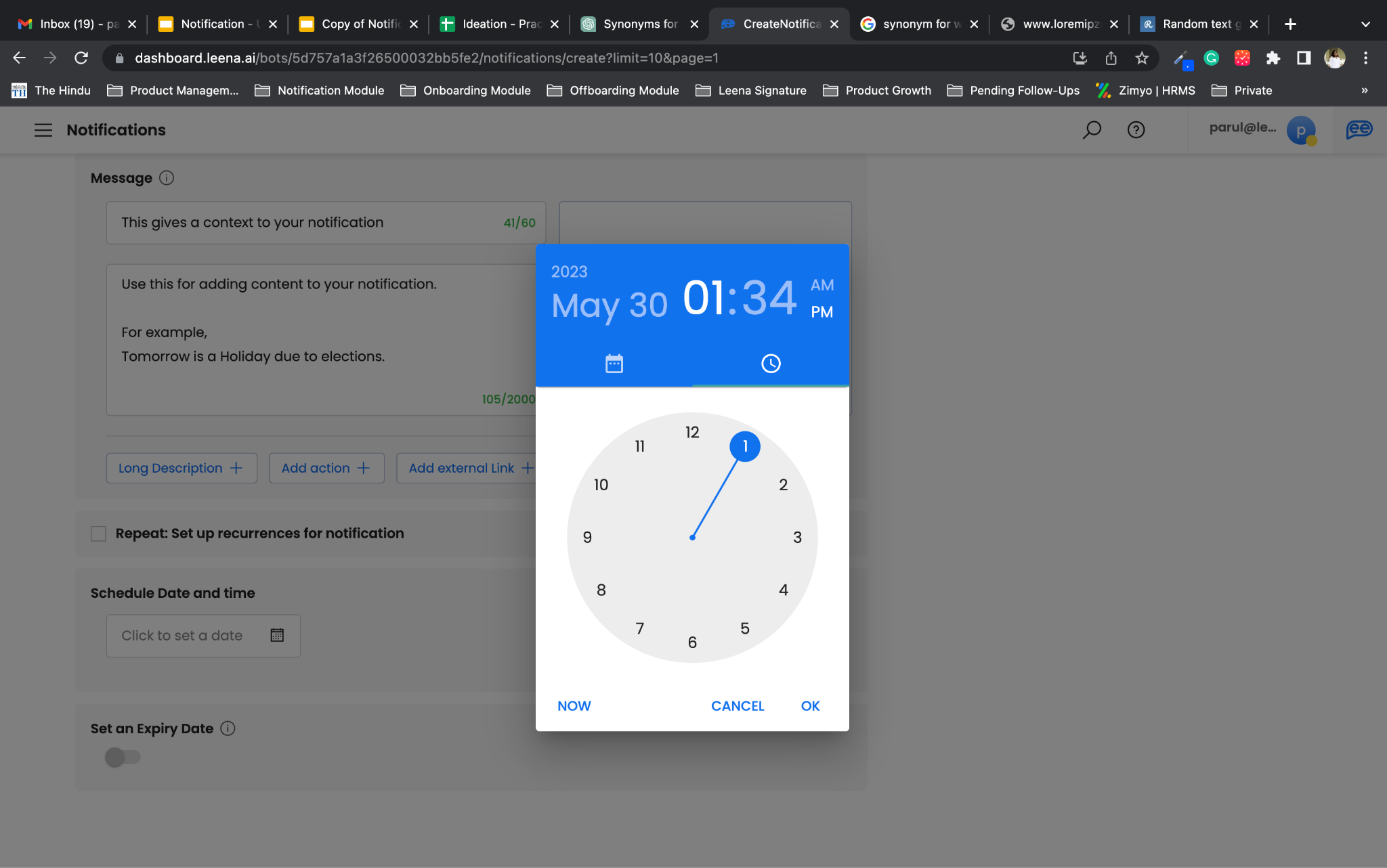Provide End Date and Time for your schedule to define the number of instances you want to create. You can choose the suggested date or a date of your choice based on your requirements. You can create a recurrence notification for minimum of 2 instances and maximum of 100 instances.