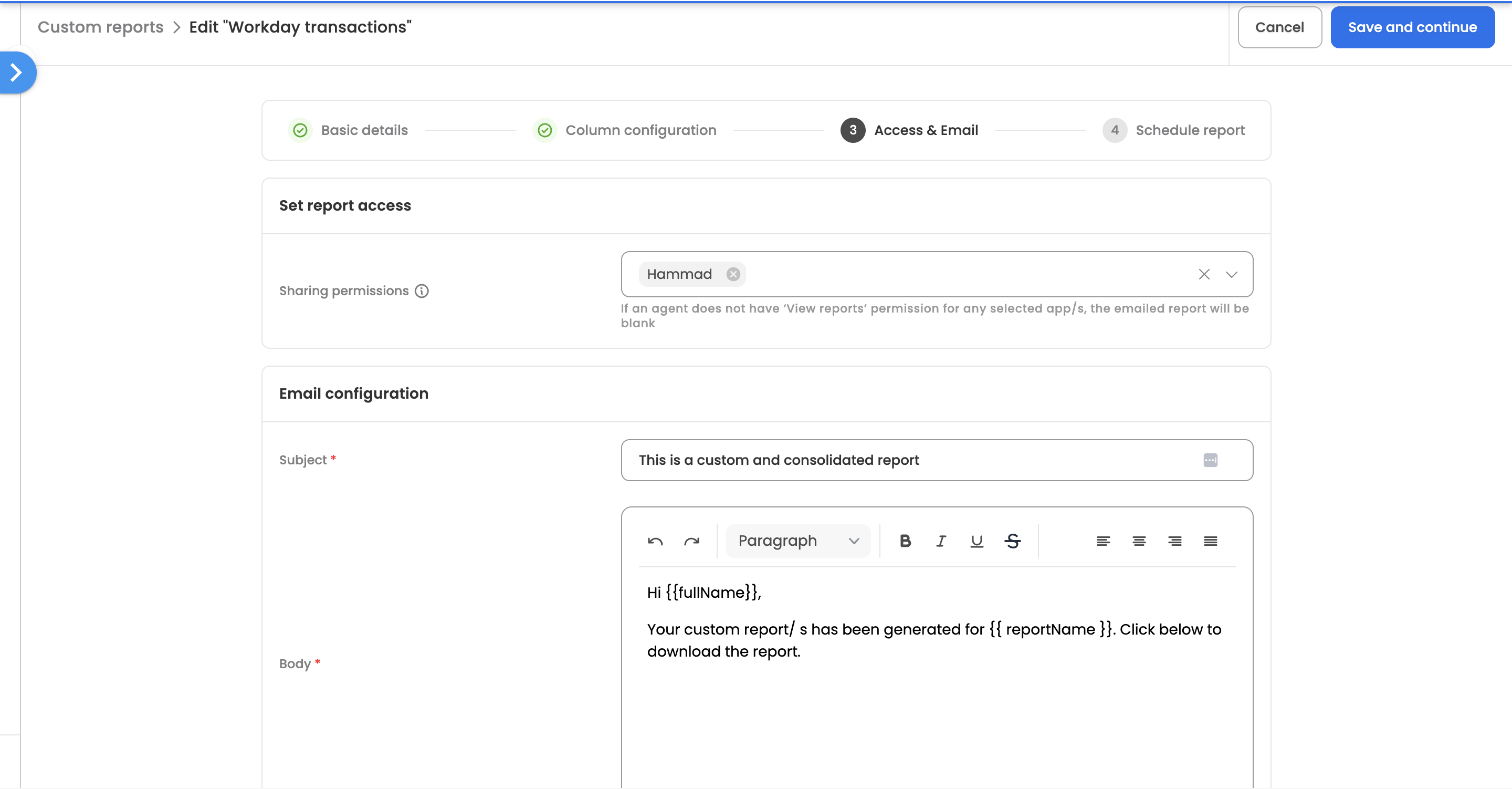 - Workflow agent/s mentioned under 'Access' configuration of the report would have access to download report.