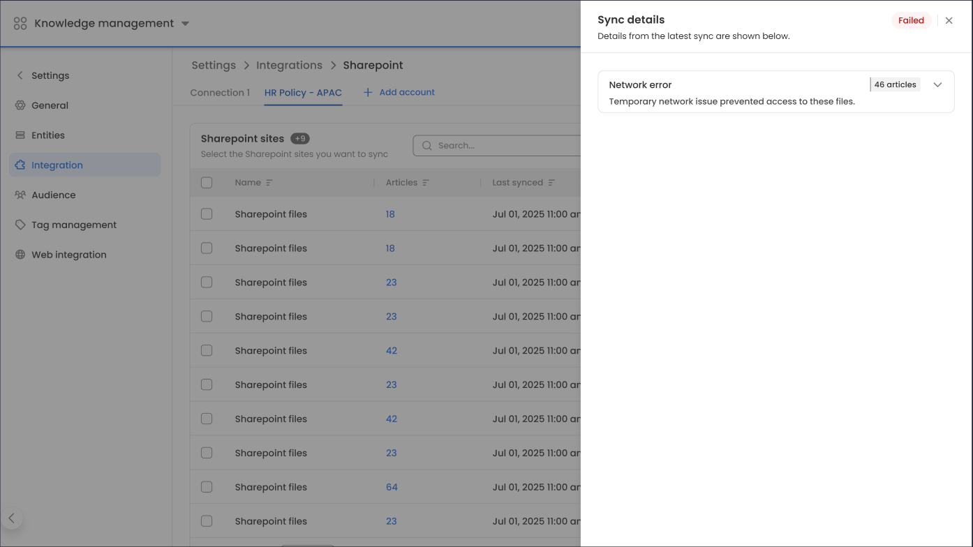 The Knowledge Management sync process has been upgraded to a Partial Sync model. This ensures that a single problematic file does not block your entire knowledge base from updating.