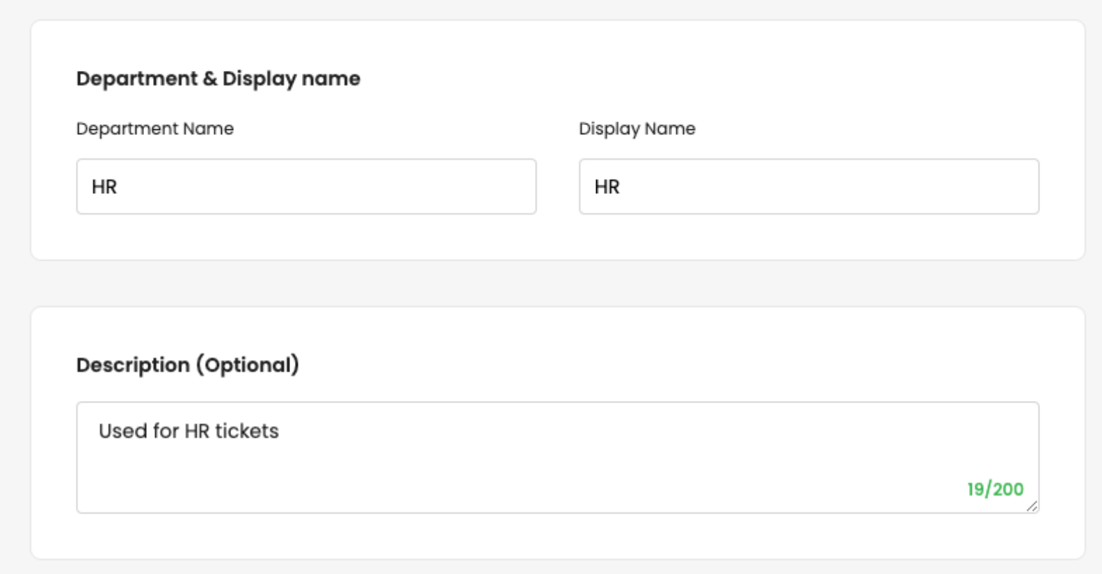 - Department Name - This text field allows special characters with a maximum length of 255 characters.