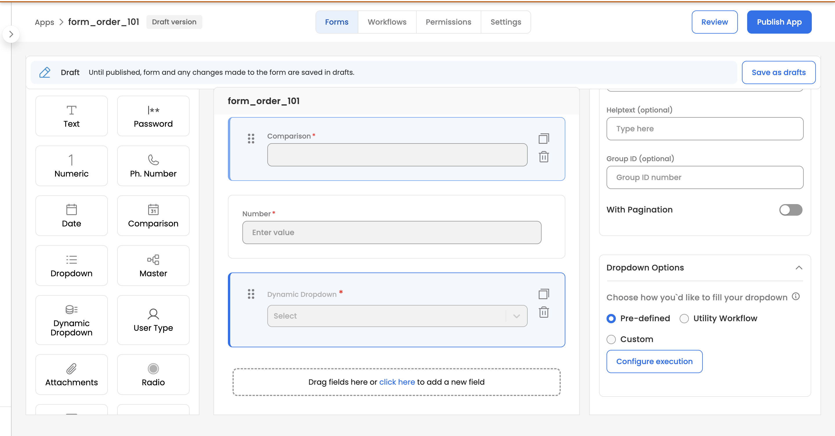 To power this functionality, we've introduced the concept of a "Dynamic dropdown utility App" within the Workflow Studio. A dynamic dropdown utility App is a lightweight, dedicated workflow you create specifically to fetch and process data for your forms.