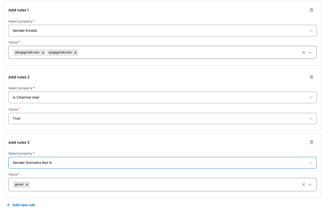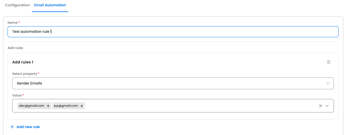 - Multiple automation rules can be added for the same bot. Based on whichever rule matches, the actions will be applied for the email tickets being created.