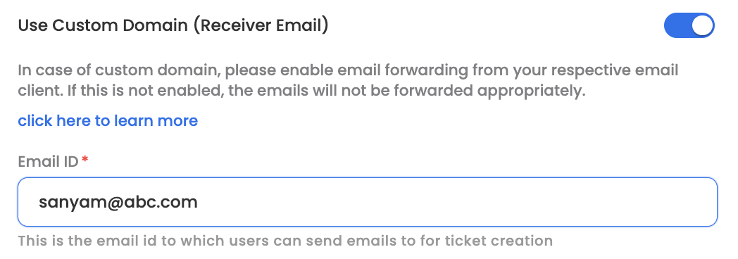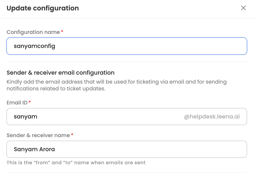 Customers can also add their custom email IDs for helpdesk if they do not want to use helpdesk.leena.ai domain for their email ticketing purposes