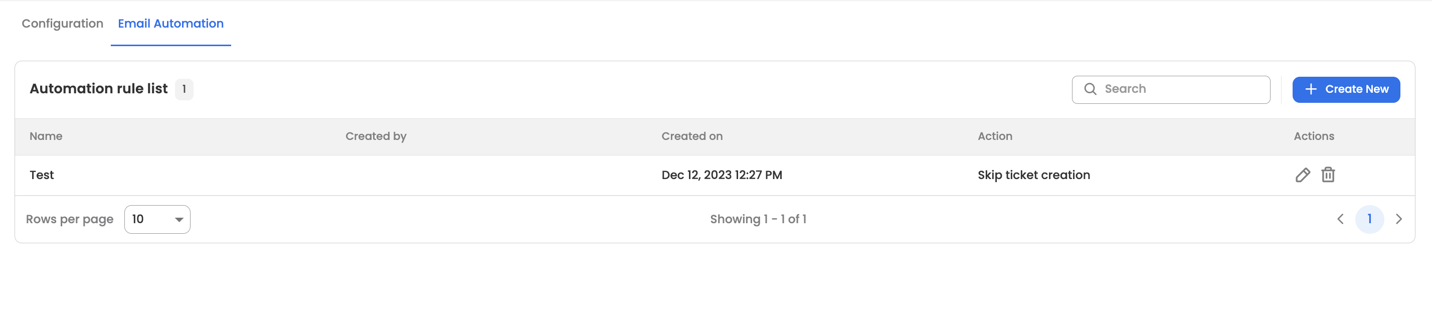- The table will initially have no rules and the user can begin by clicking on the "Create New" button