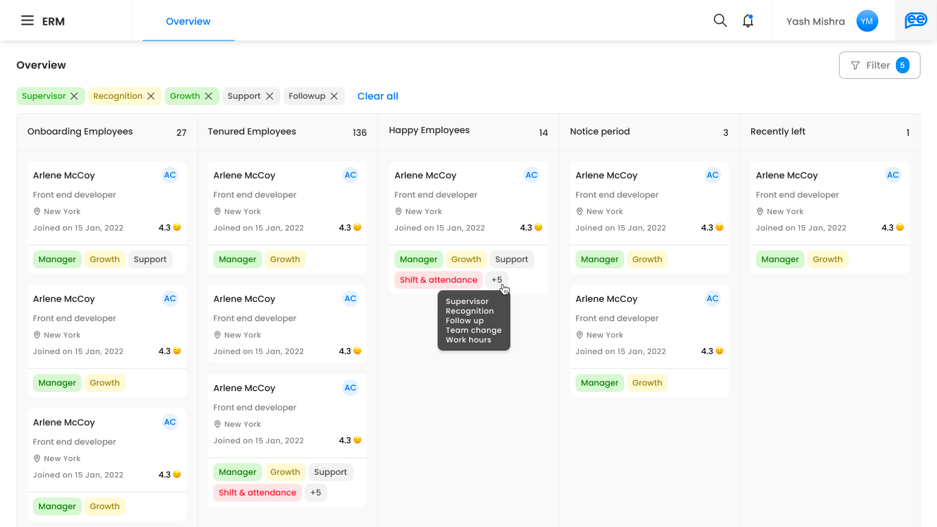 Filters can be applied to further filter the employees based on tags associated with them. The filter tags, just like employee buckets, are customizable as per an organization’s choice.