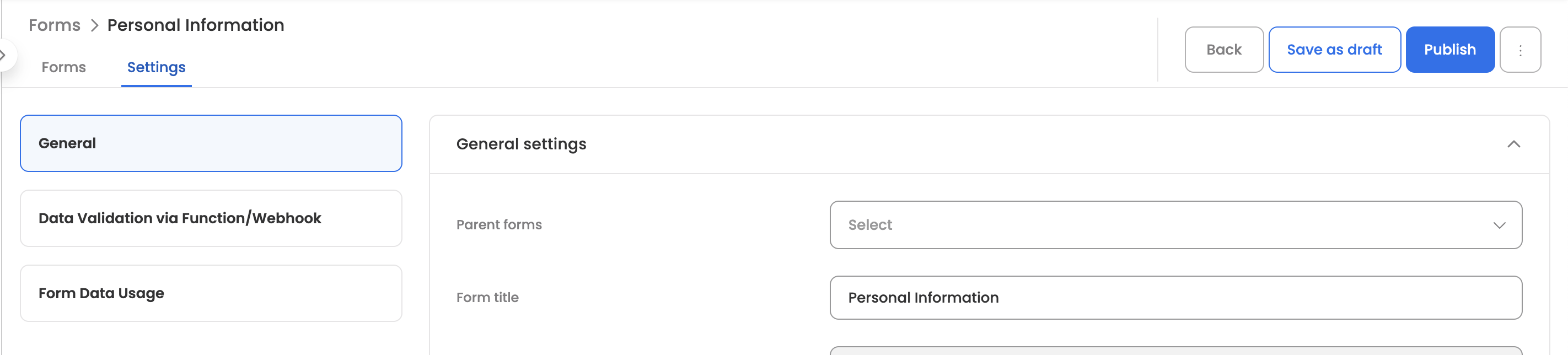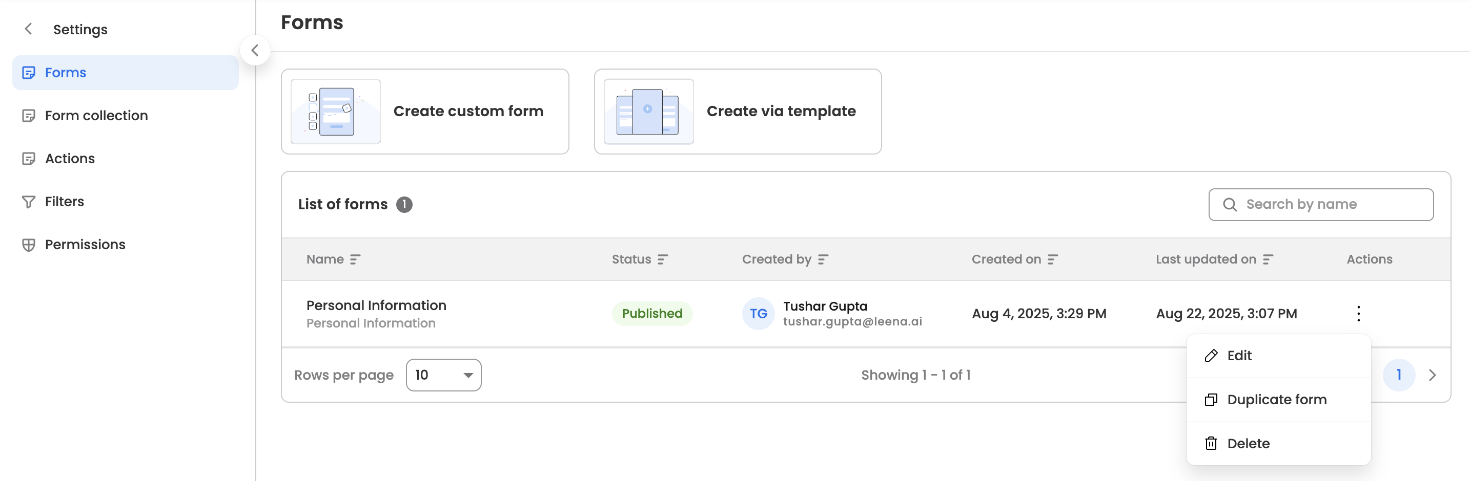 - Duplicate: Duplicate the form by specifying a name for the new form.