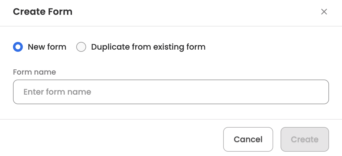 Enter a name for the new form. You can also choose to duplicate an existing form if needed.