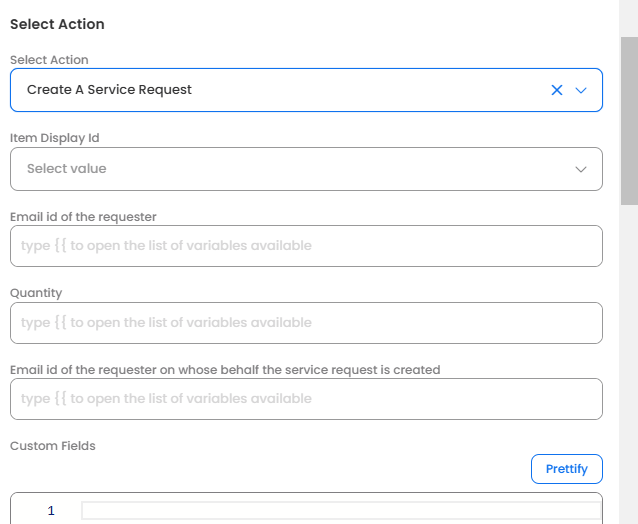 This action is used to create a service request in FreshService. Leena AI streamlines the process of submitting service requests in Freshservice, capturing user requirements and routing them to the appropriate IT team for action. Example: Ordering a laptop or an IT accessory.