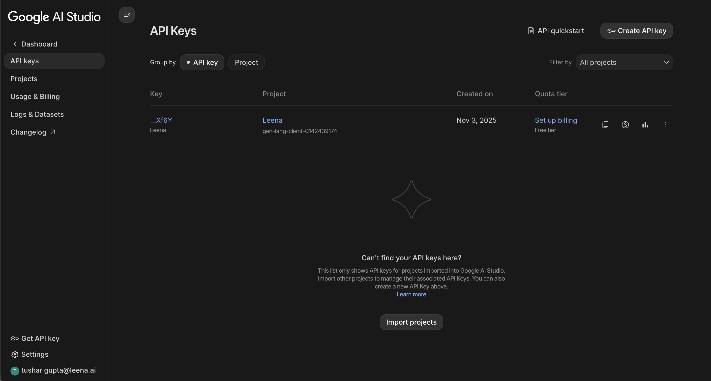 - API Key: (Required only if using Gemini API Key) Your Google AI Studio API key