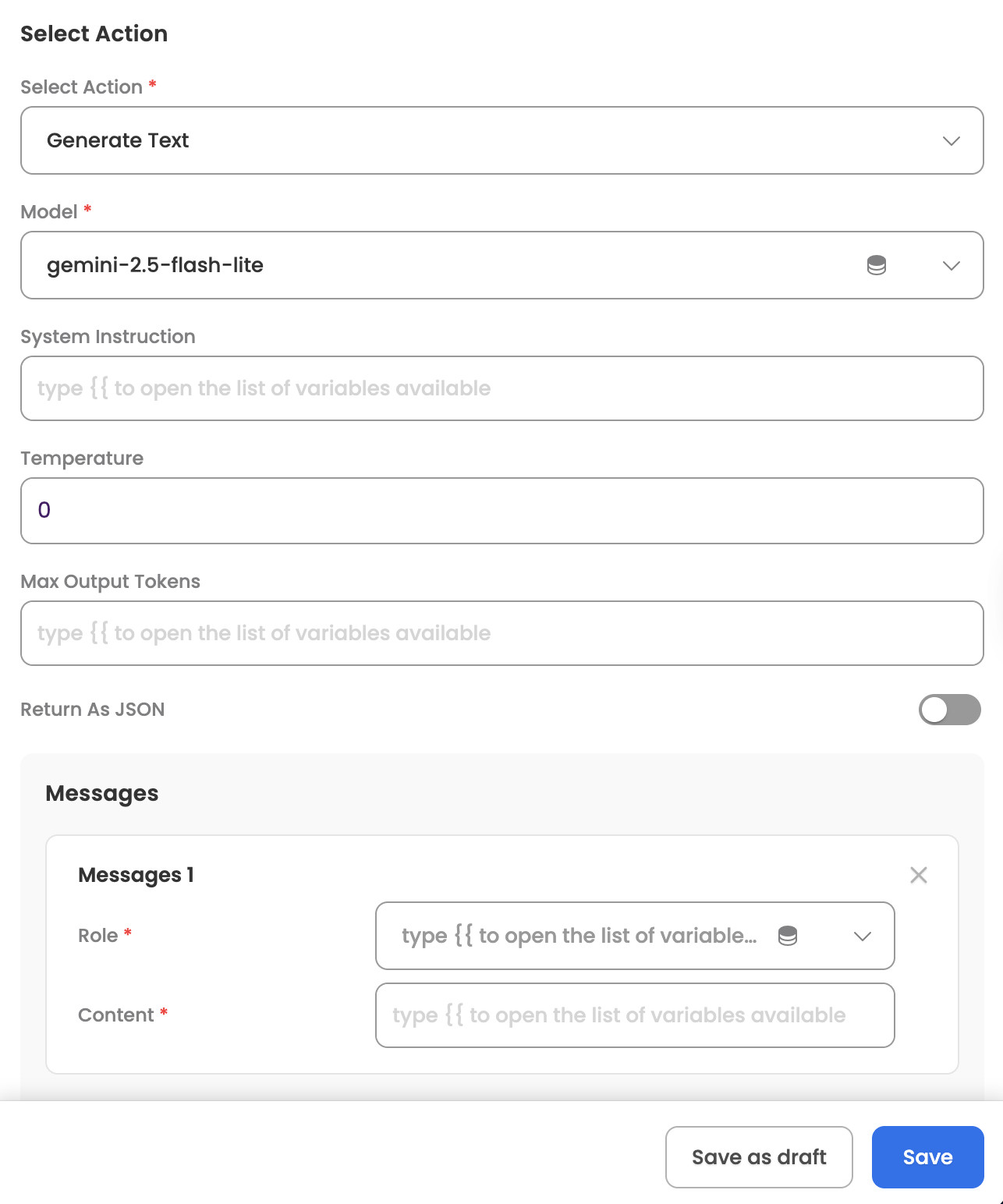 | Return As JSON | Whether to return response in structured JSON format. Default: false |