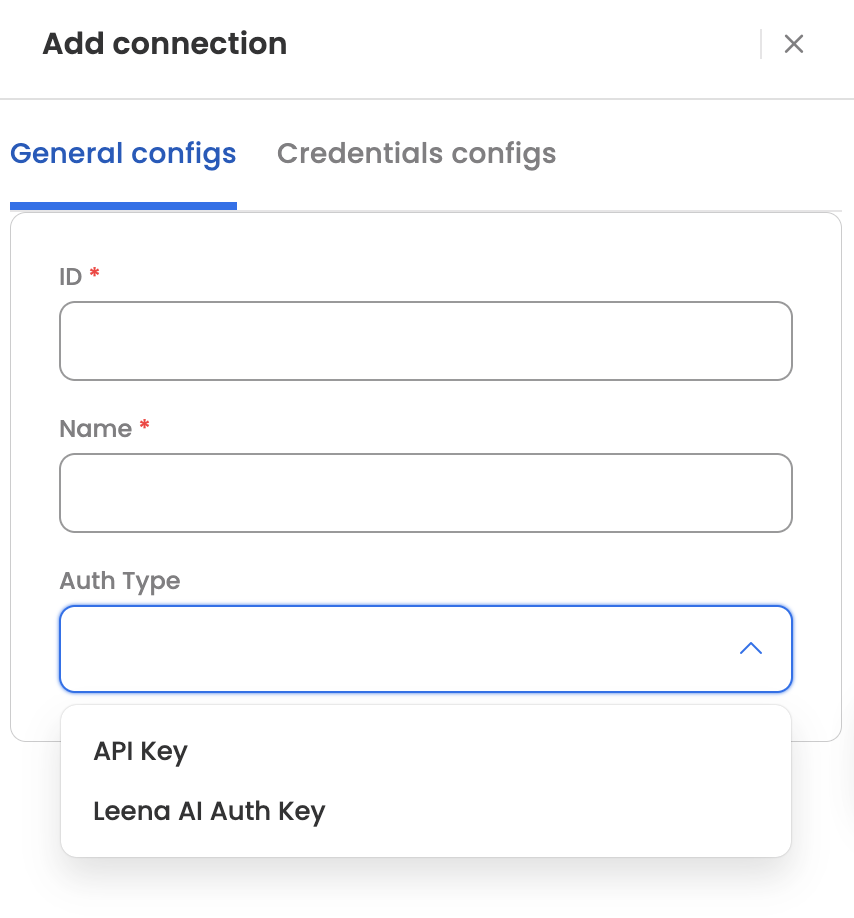 - Authentication Type: Choose between "Gemini API Key" or "Leena AI Auth Key"