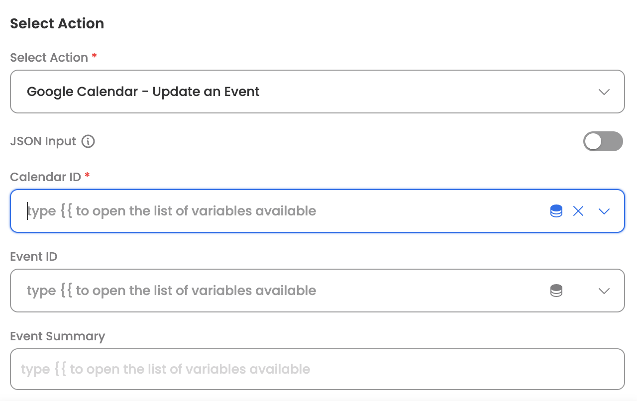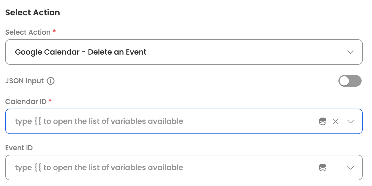 The following actions are supported for the Google Calendar connector: