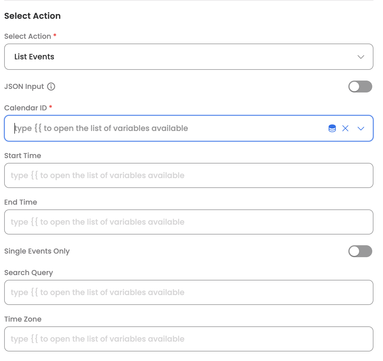 | Calendar ID | The identifier of the calendar to retrieve events from |