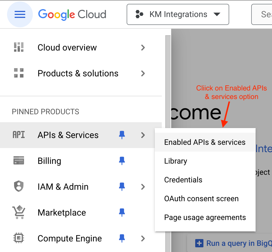Go to the menu options and click on APIs & Services and then click on Enabled APIs & services.
