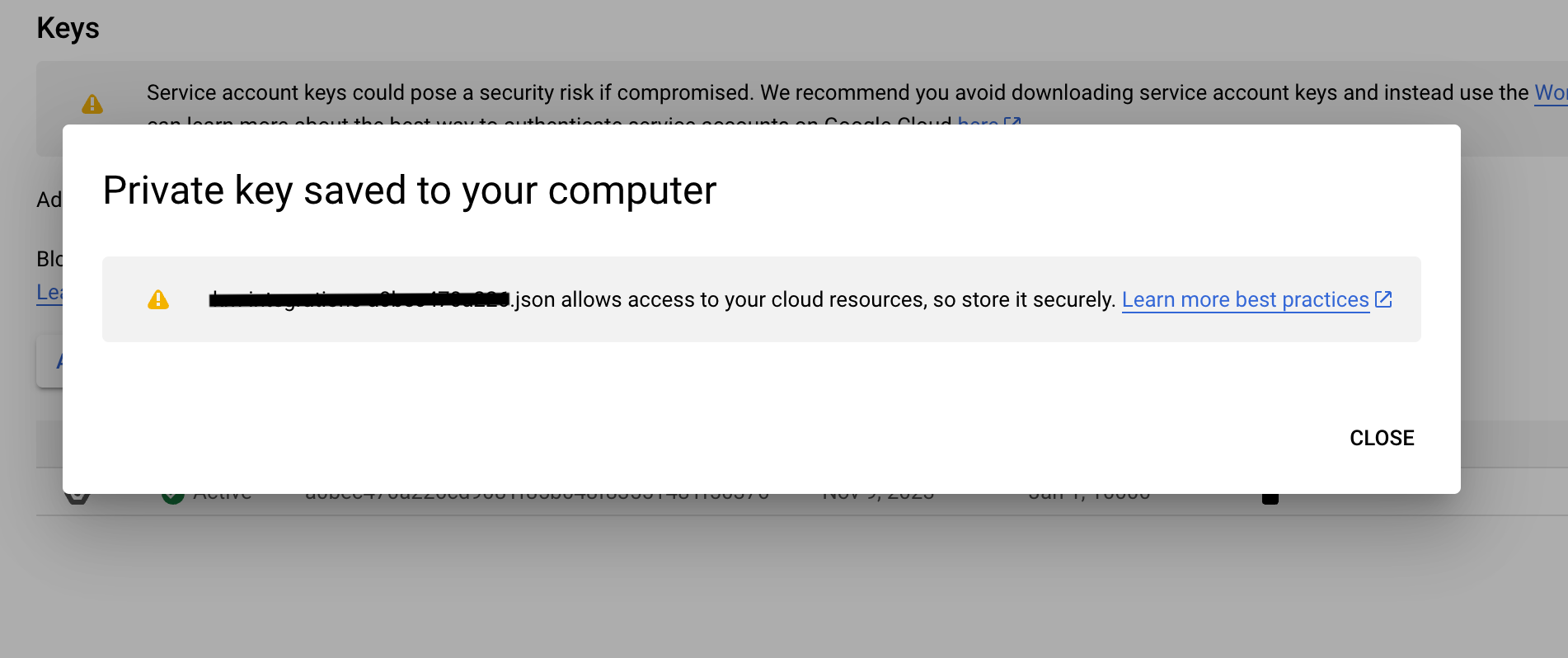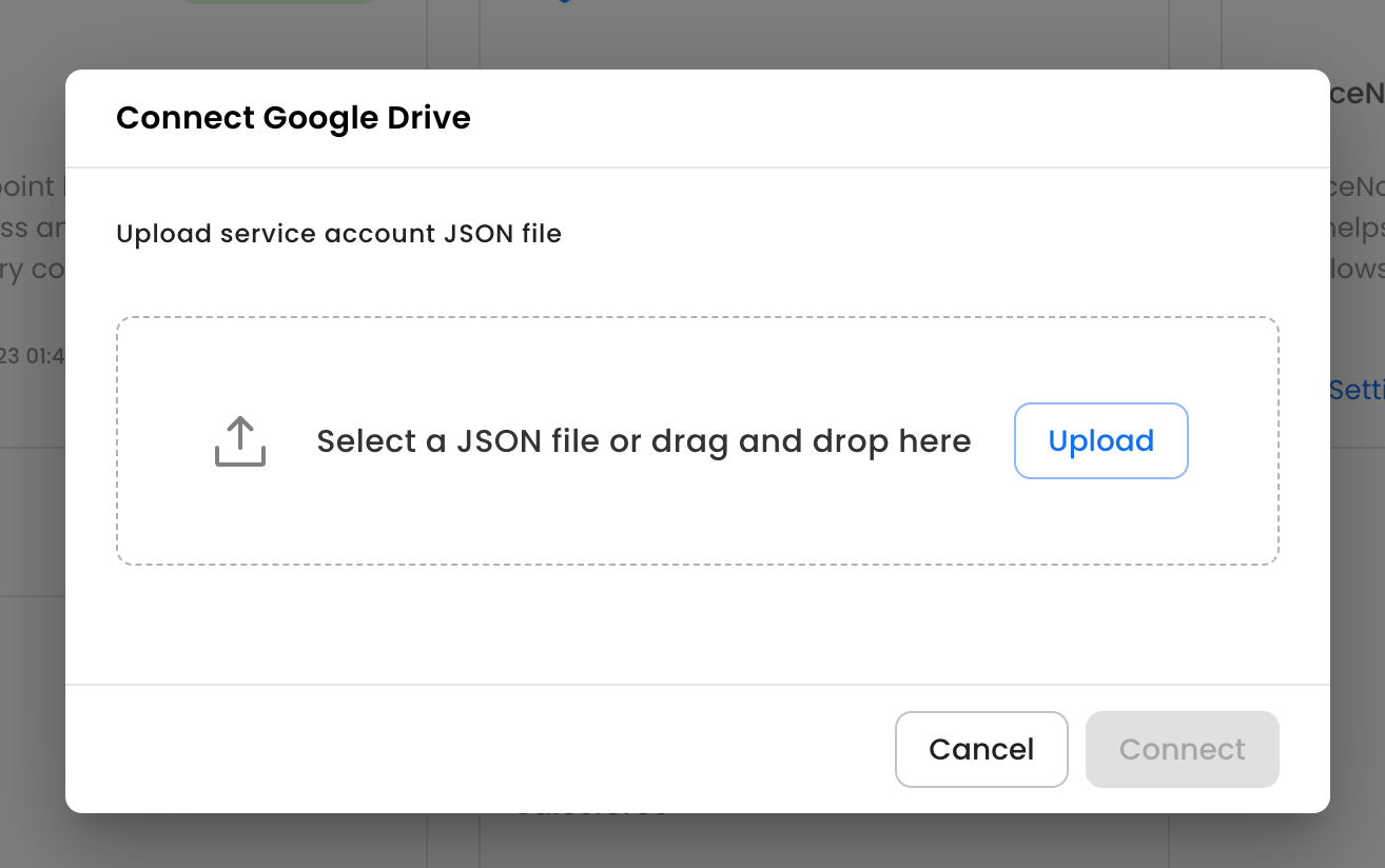 Click Upload JSON File and select the service account key file you downloaded in Step 1.