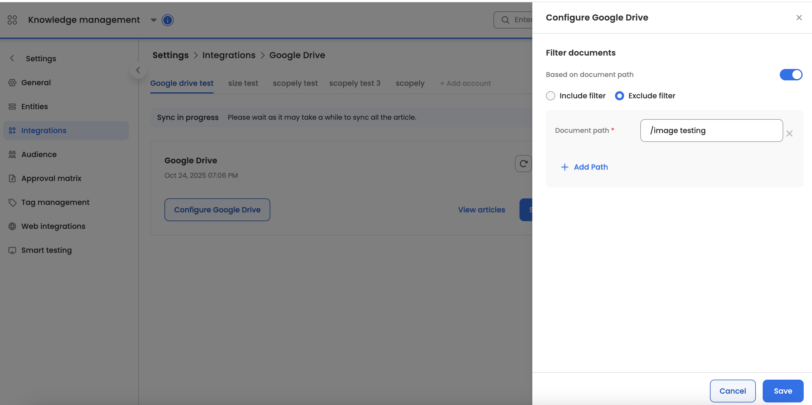 - Note: Exclude rules always take precedence over include rules. Within Google Drive, you can filter content based on the file path.