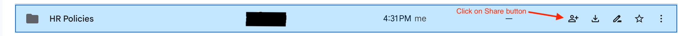 If you have files in My Drive (e.g., an "HR Policies" folder), click on the Share button.
