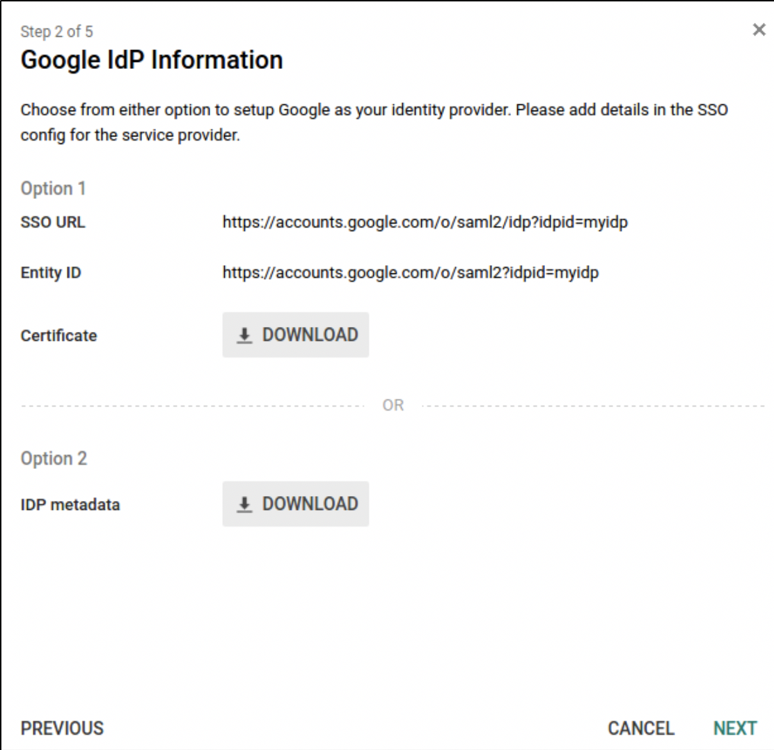 You will see the “Google IDP Information” page. Please give us this information: