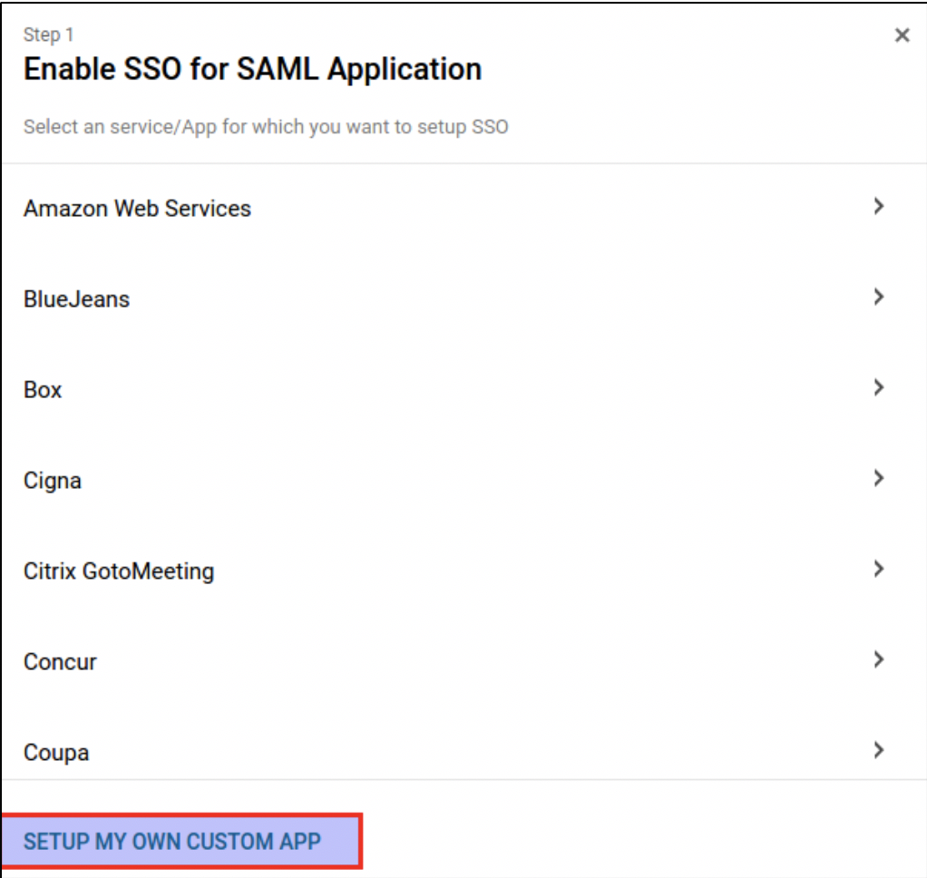 Go to Apps > SAML Apps and click “+” at the right bottom of the page to add a new SAML IDP (“Enable SSO for SAML Application”).