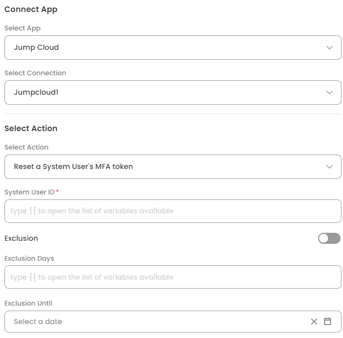 Resets the multi-factor authentication (MFA) token for a system user in JumpCloud, allowing them to re-enroll in MFA. The Agent can leverage the skill (workflow) when users encounter issues with their MFA device or lose access.