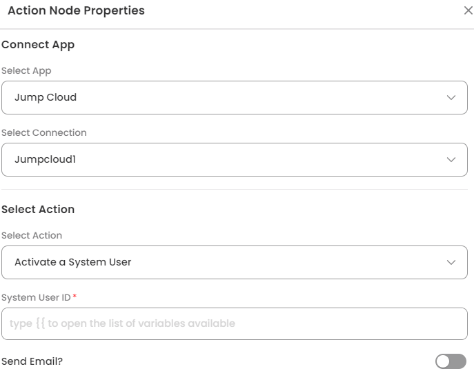 Activates a de-activated system user in JumpCloud. The Agent can leverage the skill (workflow), which has been designed to activate a user account that has been created but is currently inactive, once the user raises a query to do so.