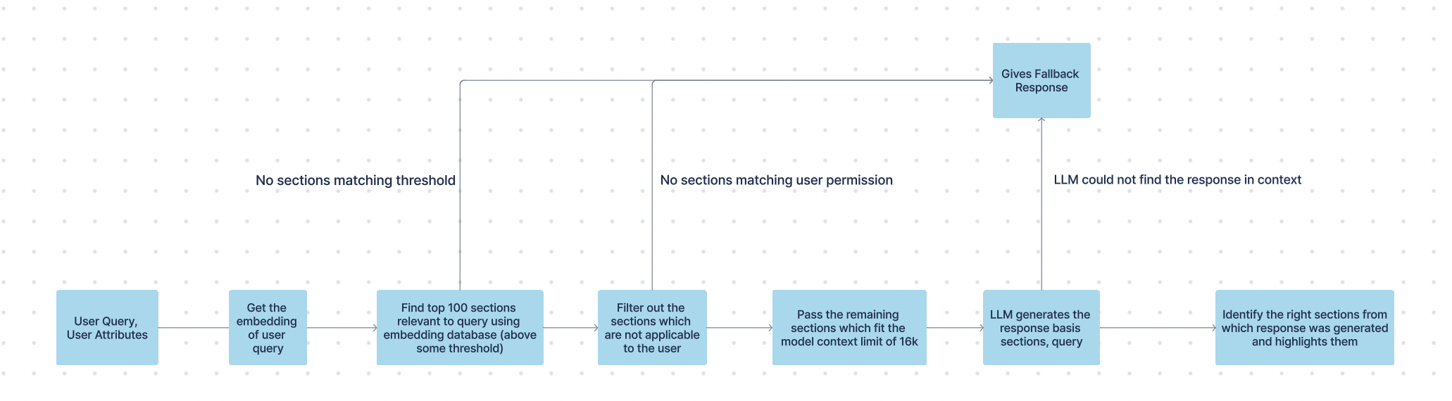 - Once a match is confirmed (while also considering user permissions), the response linked to that question is shown.