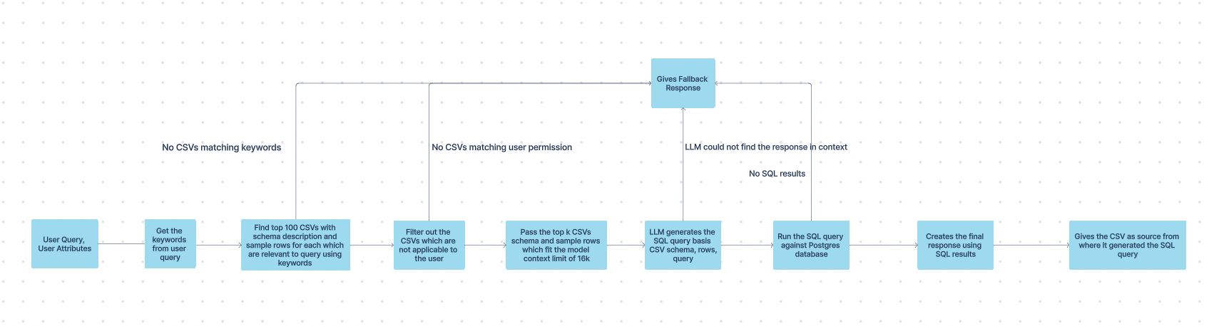 For SQL-based CSVs, our search pipeline follows these steps to generate a final response: