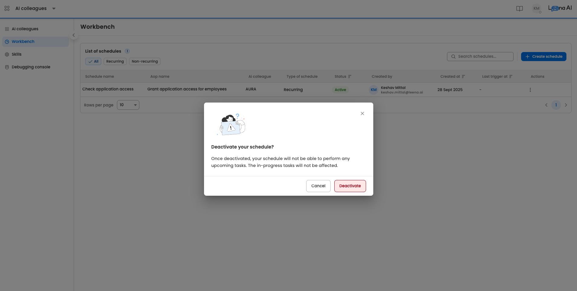 - Access: Click "Deactivate" from the Actions dropdown. Changes the status of schedule to 'Inactive'